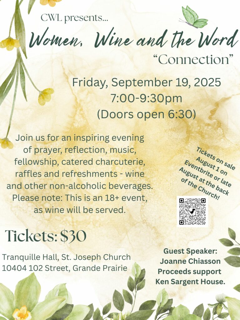 Join us at St. Joseph Roman Catholic Church for an inspiring evening of prayer, reflection, music, fellowship catered charcuterie, raffles, and refreshments- wine and other non-alcoholic beverages. This event is all about bringing women together to enjoy great company, reflection, enriching discussions, refreshments and snacks.